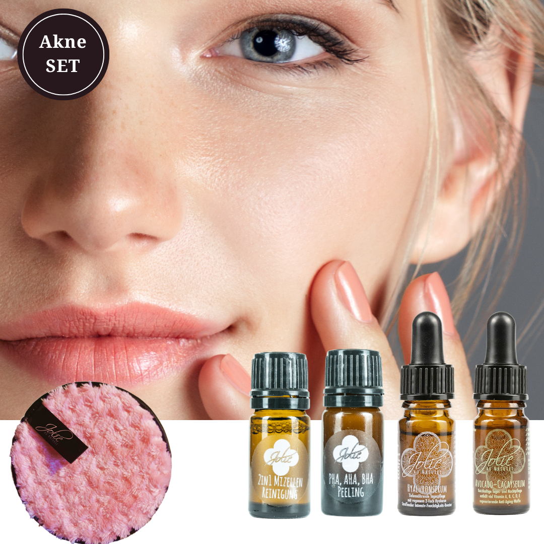Das Akne Routine Set von Jolie au Naturel ist Deine umfassende Lösung im Kampf gegen Akne. Es bekämpft nicht nur aktiv Unreinheiten und Rötungen, sondern pflegt Deine Haut auch vorbeugend, um neuen Ausbrüchen entgegenzuwirken und Dein Hautbild dauerhaft zu verbessern. Unsere Kundenrezensionen bestätigen die Wirksamkeit dieses Sets bei zu Unreinheiten neigender Haut und empfehlen es ausdrücklich für eine klare, gesunde Haut. Entdecke eine Hautpflege, die Dir ein klares, gesundes Aussehen verleiht.