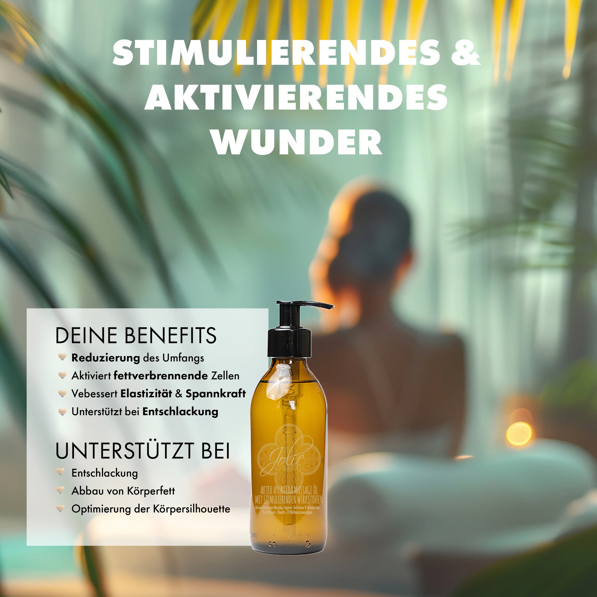 Tauche ein in die Welt des ultimativen Wohlbefindens mit unserem Aktiv Ayurveda Massageöl. Erlebe die erhebende Kraft der Aromatherapie mit dem himmlischen Duft von grüner Mandarine, aktivierendem Ingwer, Manuka & Kurkuma, die Deine Sinne bei jeder Anwendung betören!
