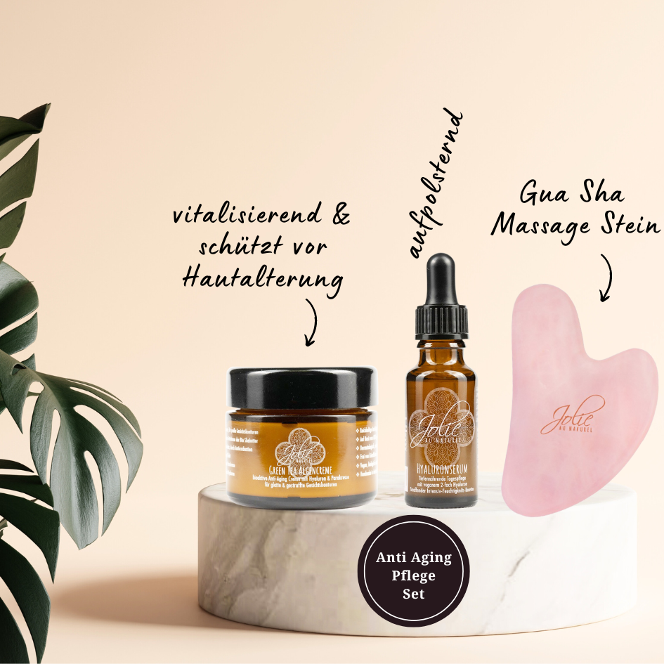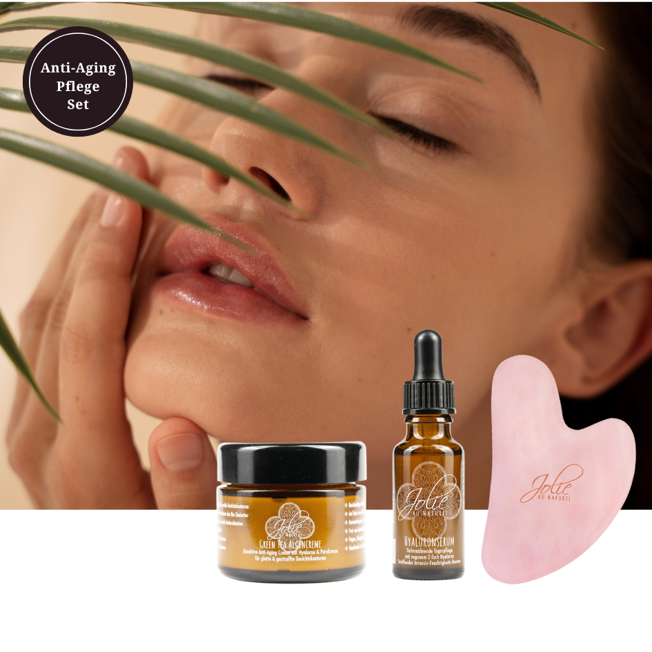 Verwende die Kakaobutter-Creme 2–3 Mal pro Woche als Overnight Maske für ein besonders gepflegtes Hautgefühl. Für eine Extra-Portion Glow kombiniere das Set mit dem Jolie au Naturel Gua Sha Stein.