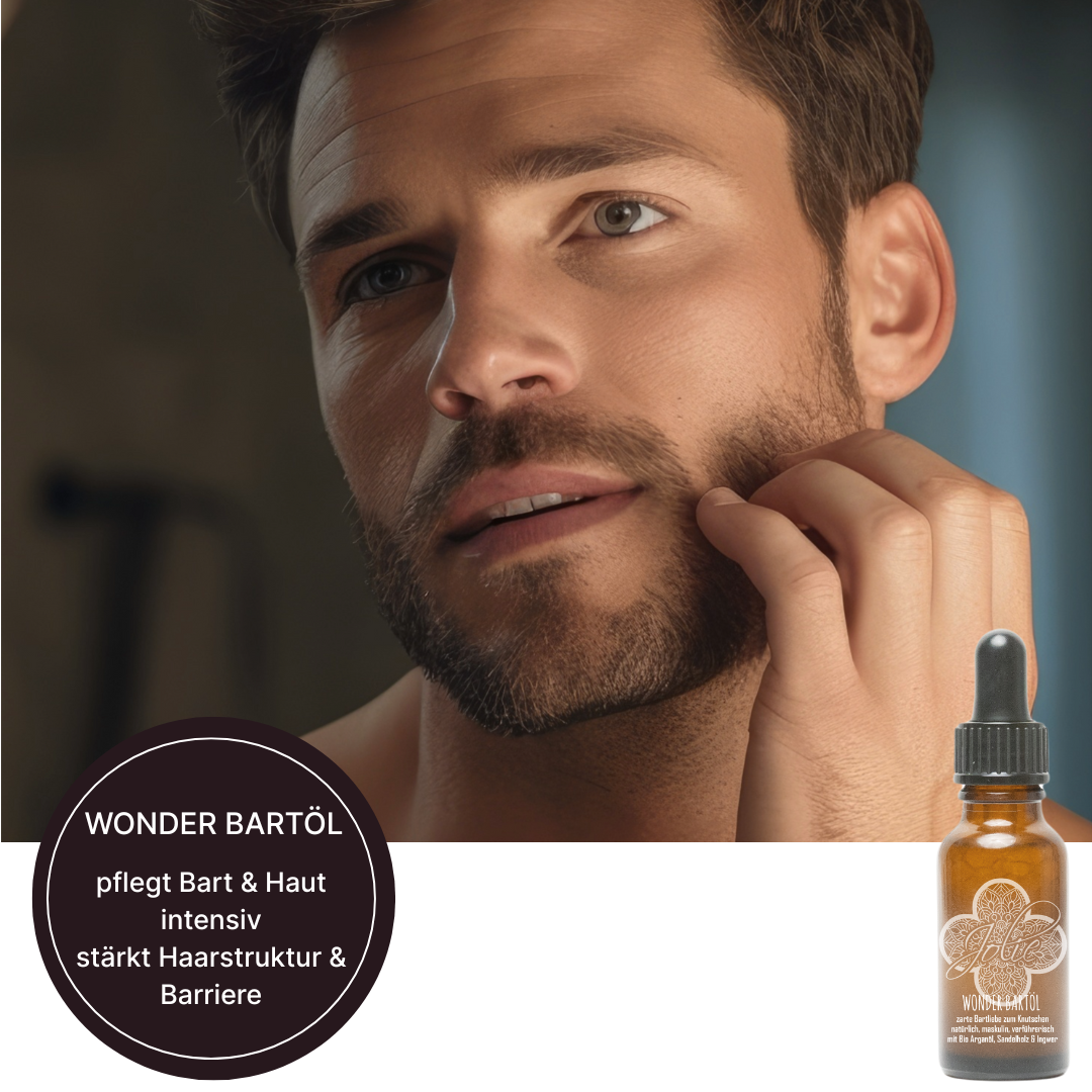 Sanfte Bartliebe beginnt hier: Unser natürliches Bartöl verwandelt selbst den wildesten Bart in eine streichelzarte Verführung. Schluss mit kratzigen Küssen und rauen Stoppeln – dieses Bartöl macht den Bart so weich, dass Kinder ihren Papa wieder gerne küssen und Partner*innen sich auf jede Berührung freuen. Natürlich. Maskulin. Verführerisch. Für Bartträger, die Pflege mit Charakter suchen – ganz ohne Mikroplastik, Silikone oder Kompromisse.