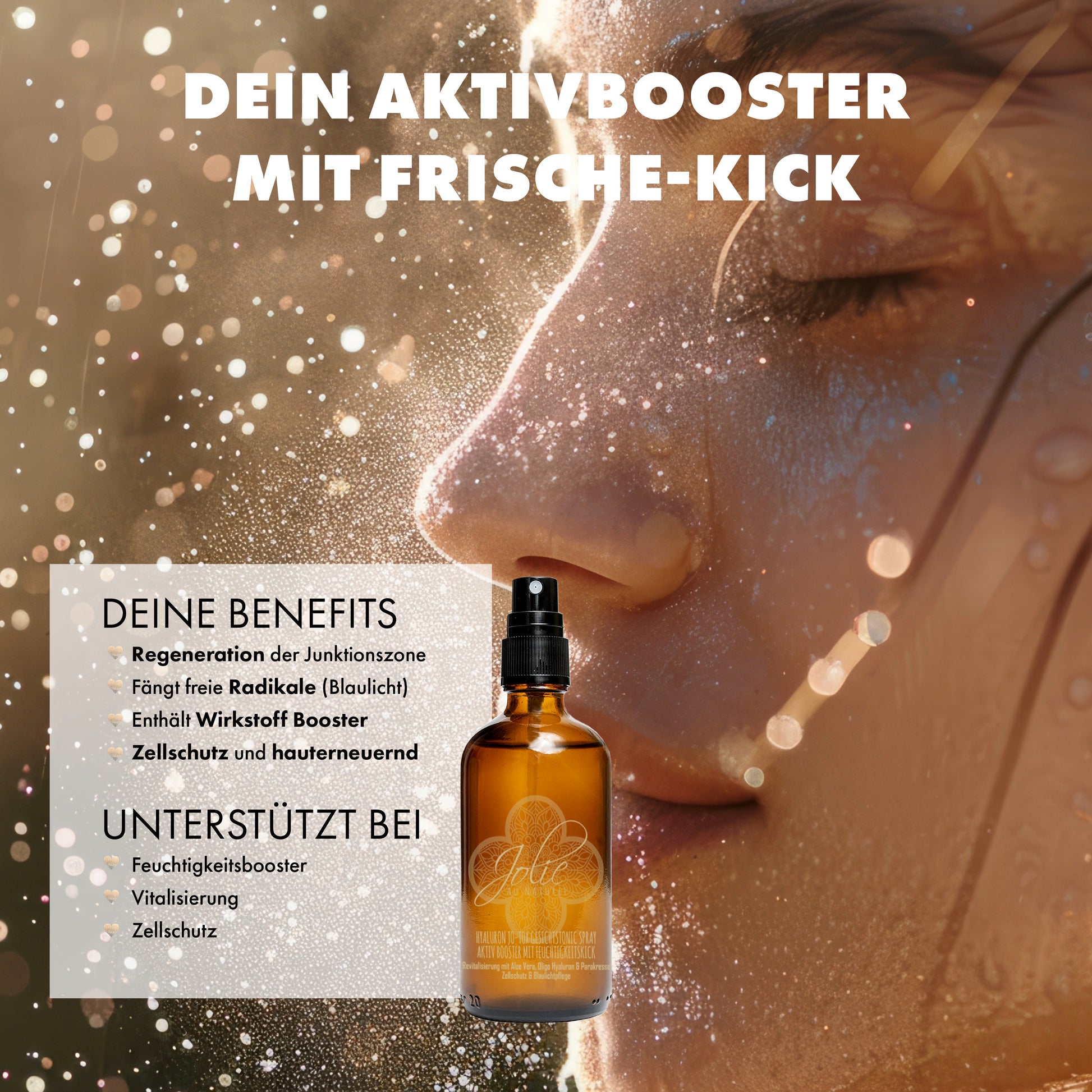 Das Jo-Tox Gesichtstonic ist ein wahres Multitalent für die täglich Pflegeroutine oder für eine Erfrischung zwischendurch. Mit seinen herausragenden Eigenschaften erobert es die Herzen von Hautpflegeenthusiasten. Dieses Tonic ist nicht nur feuchtigkeitsspendend es steigert auch den Zellschutz und beruhigt Rötungen und Hautirritationen. Darüber hinaus trägt es dazu bei, Falten zu reduzieren und die Haut zu erneuern, was zu einem jugendlichen und strahlenden Teint führt.