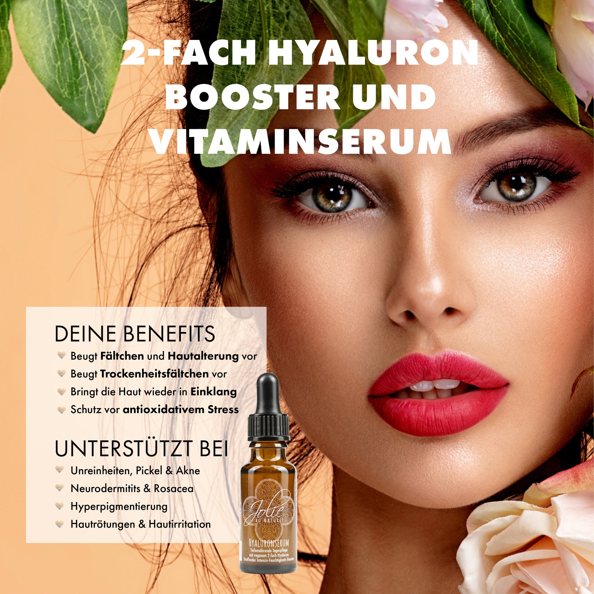 Unser Tipp: Verwende das Hyaluronserum als Tagespflege unter Deinem Make-Up oder als Vitamin Booster unter Deiner Feuchtigkeitscreme. Oder bestelle Dir das Hyaluronserum im Set mit unseren exklusiven Wirkstoffkonzentraten + 2 in 1 Creme!