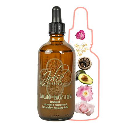 Mineralien- und proteinreiches Cacay-Öl wirkt durch seinen hohen Gehalt an Vitamin E und natürlichem Retinol stark antioxidativ und zellschützend. Für weiche, geschmeidige Haut und intensive Regeneration sorgt zusätzlich das Bio-Avocadoöl. Die Kollagenproduktion wird zusätzlich durch Bio-Wildrosenöl gefördert. Das ätherische Öl der Rose hat eine beruhigende Wirkung und Haferextrakt wirkt als natürliches Kollagen zellregenerierend. Die Basis aus 60% Bio-Rosenwasserverbindest Du durch Schütteln mit den hoch konzentrierten Wirkstoffen.