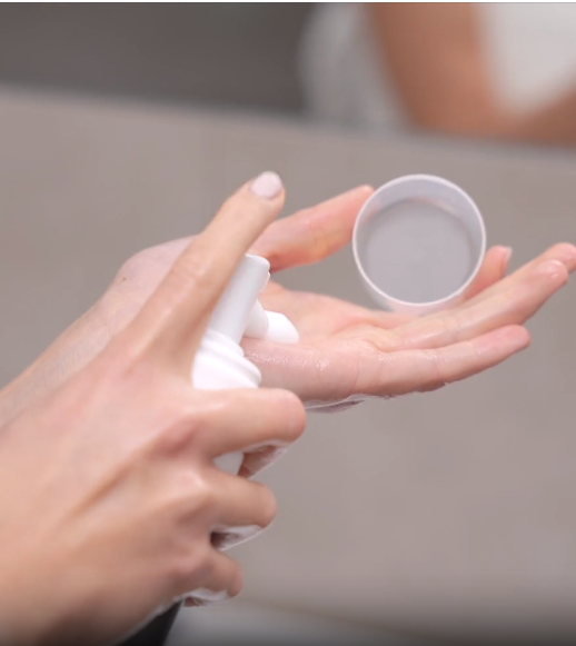1. Anwendung: Zwei Pumpstöße des Schaums in die Hände geben.