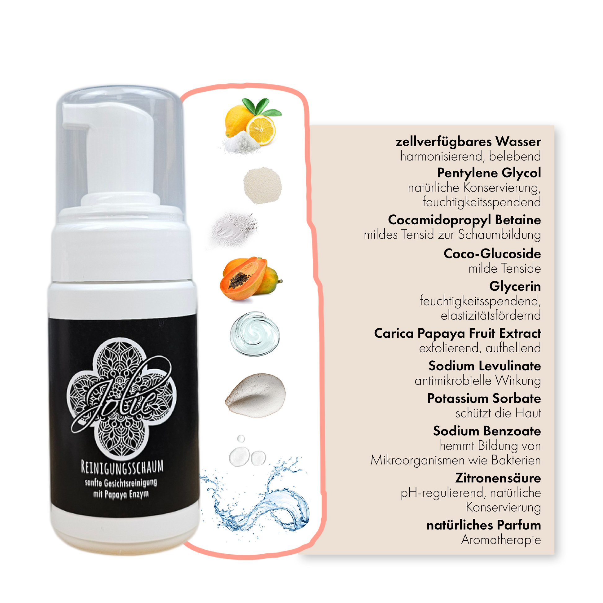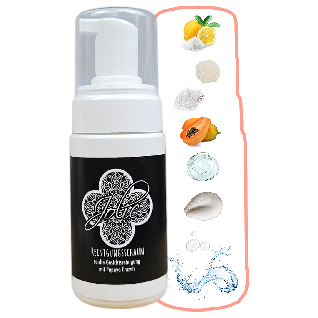 Stell Dir vor, wie Dein Gesicht von fluffigem Schaum umhüllt wird, der nicht nur reinigt, sondern auch gegen die Zeichen der Hautalterung wirkt. Unser Papaya Reinigungsschaum enthält hochwertige Inhaltsstoffe, die Deine Haut verwöhnen und jugendlich frisch halten: