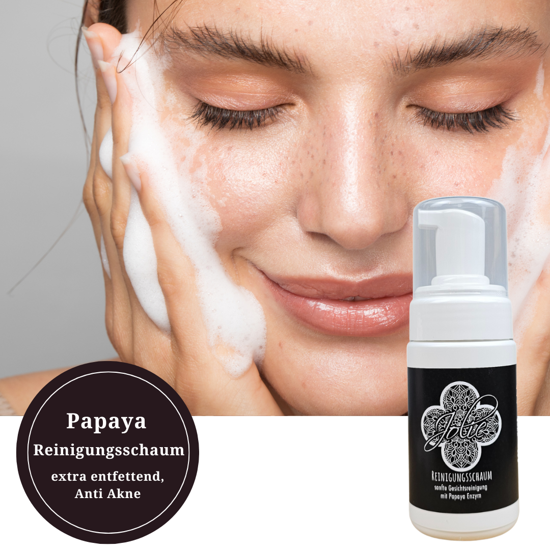 SEO optimized for: Reinigungsschaum Gesicht, milde Gesichtsreinigung, Papaya Enzym Peeling, porentiefe Reinigung, Naturkosmetik Reinigung, Reinigung bei unreiner Haut