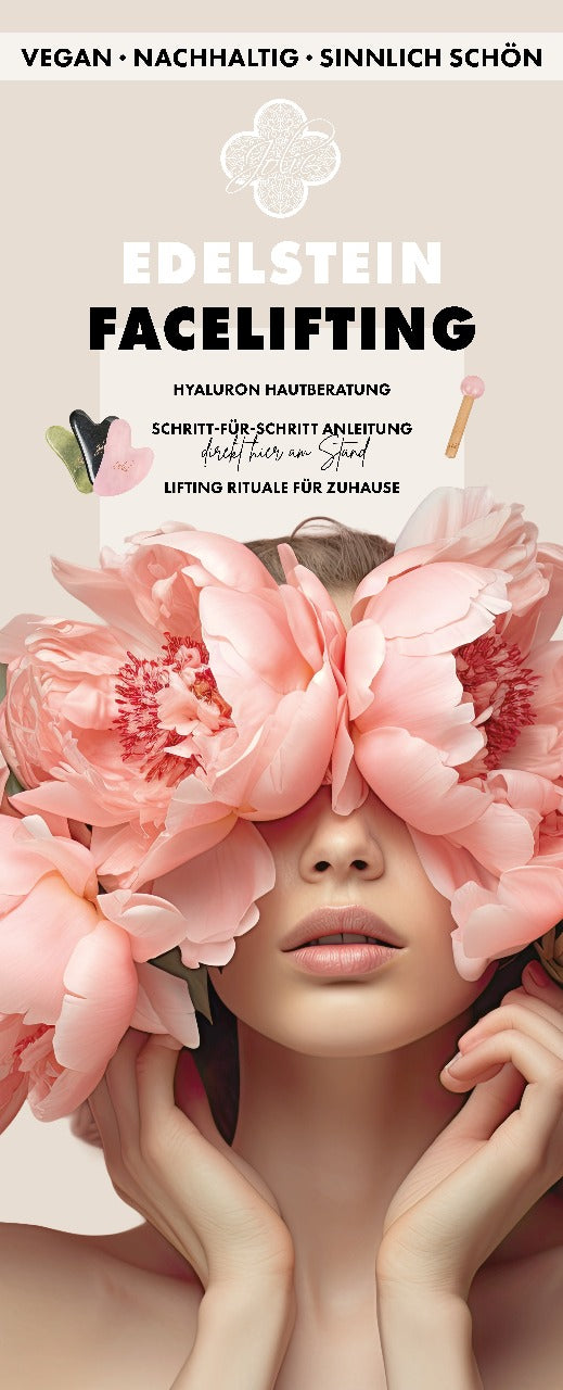Bringe das Edelstein-Facelifting direkt in dein Kosmetikstudio! Unser hochwertiges Roll-Up Banner im Format 85x200 cm ist dein perfekter Blickfang für Behandlungsräume, Events, Messen oder deinen Empfangsbereich.