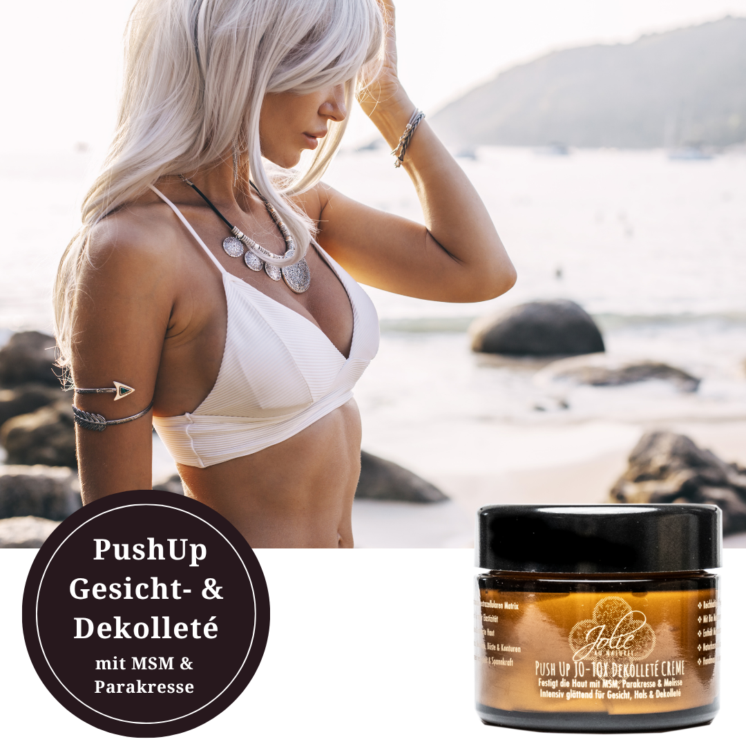 Jo-Tox Dekolleté/Gesichtscreme ist Dein Schlüssel zu einer jugendlich strahlenden Haut, die vor Vitalität strotzt. Unsere einzigartige Formel bietet eine effektive Anti-Aging-Lösung, die Deine Haut von innen heraus pflegt. Mit den natürlichen Inhaltsstoffen Melissenwasser, Jojobaöl, Wonderage™, Parakresse und Bergamotte wirst Du die Veränderungen in Deinem Hautbild sofort bemerken. Investiere in Deine Schönheit, investiere in Jo-Tox! Bestelle jetzt!